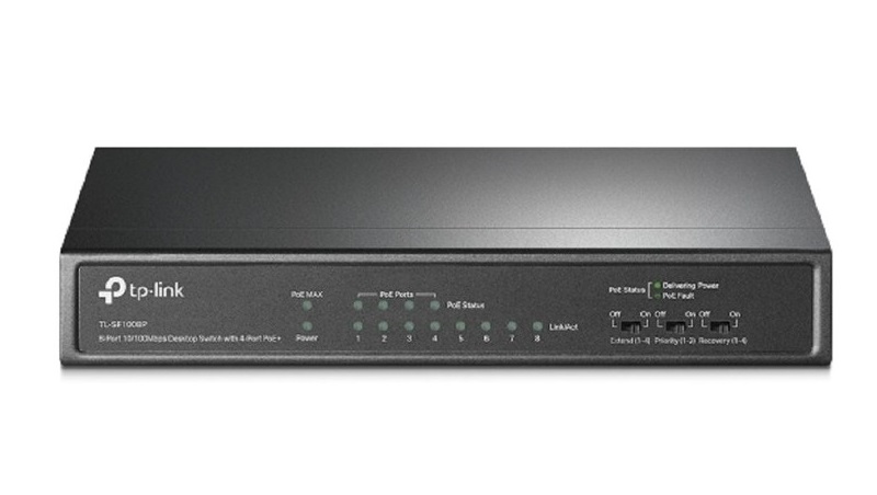 Коммутатор TP-Link TL-SF1008P 8-портовый настольный коммутатор 10/100 Мбит/с с 4 портами PoE+, стальной корпус