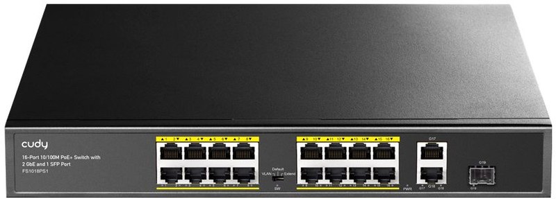 Коммутатор Cudy FS1018PS1 16 портами 10/100 Мбит/с, 2 гигабитными портами Uplink, портом SFP и поддержкой PoE+ 200 Вт