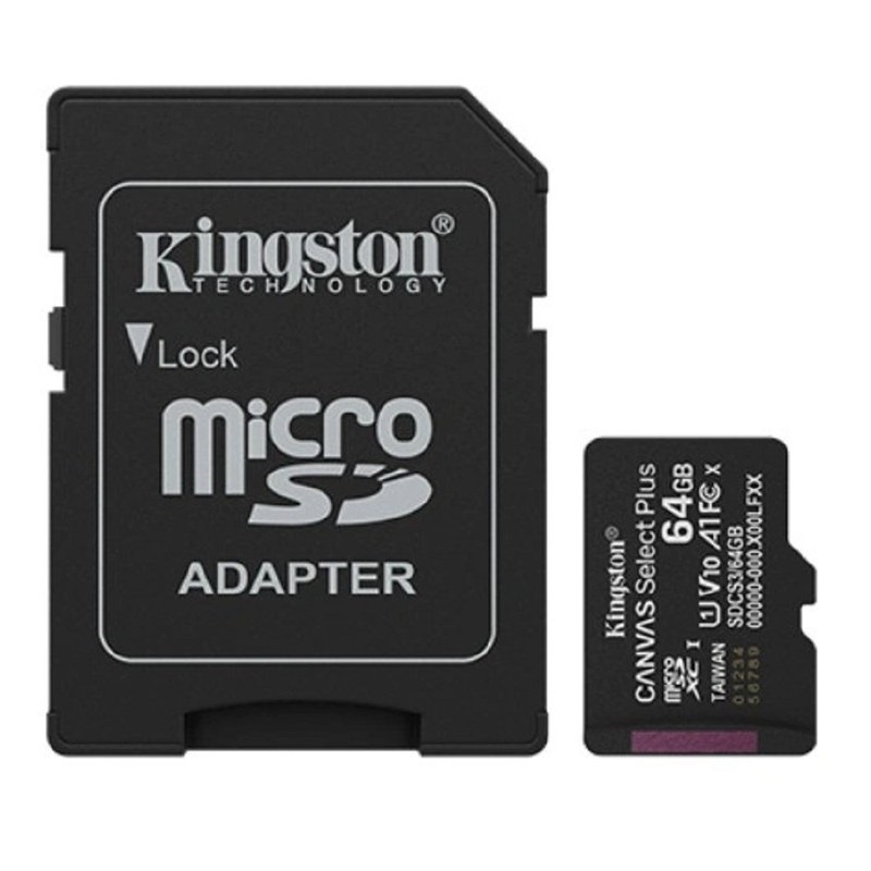 Карта памяти MicroSDXC 64Gb Kingston SDCS3/64GB Class 10 UHS-I U1 A1 V 10 Select Plus SD адаптер 100MB/s