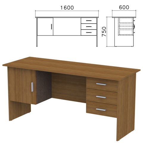 Стол письменный Канц СК29.9, 1600х600х750мм, 2 тумбы, комбинированный, цвет орех пирамидальный