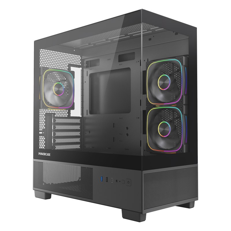 Корпус mATX без БП Powercase CVMMSB-A3 Vision Micro S3B, Tempered Glass, Type-C, 3x 120мм ARGB PWM Fan, чёрный