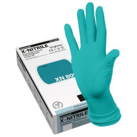Перчатки нитриловые смотровые Manual XN809-02 особо прочные удлиненные 25 пар 50 шт, размер M средний