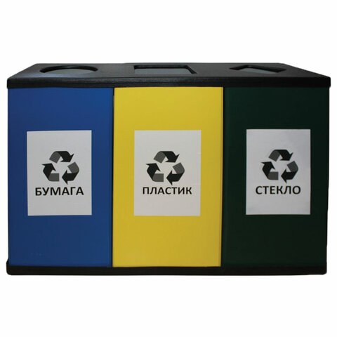 Урна для мусора Титан 450 металлическая раздельного сбора, 700х1065х360мм, 3 бака по 80 литров, оцинкованная сталь/прочный термостойкий пластик