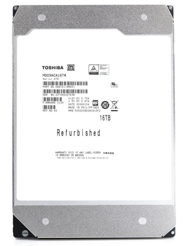 Жесткий диск SATA3 16Tb 7200rpm 512Mb Toshiba MD09ACA16TR MD09 3.5 Recertified