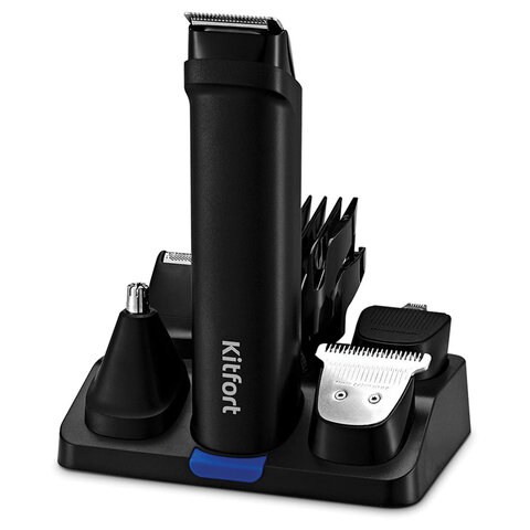Триммер Kitfort КТ-3140-3 4 в 1, 6 насадок, 20 установок длины 0.5-20мм, беспроводной, черный