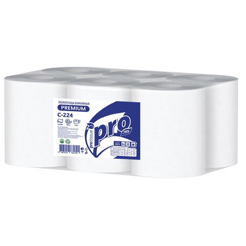 Полотенца бумажные Protissue С224 M1 Premium, 2-сл, белые, с центральной вытяжкой 150м комплект 6 рулонов
