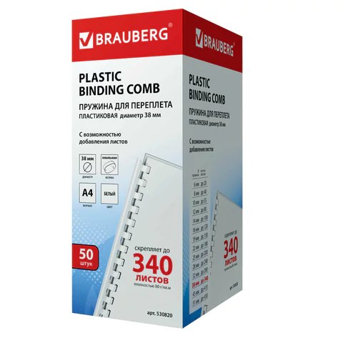 Пружины для переплета Brauberg 530820, комплект 50 шт, 38мм для сшивания 281-340 л., пластиковые белые